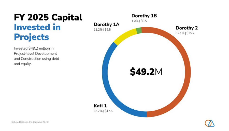 “Our 2025 financial results reflect the significant investment we made in building the foundation for long-term growth. We raised approximately $142 million in capital, grew our total cash position by 750% to $88.8 million, and added two new project-level financing partners,” said David Michaels, interim CFO of Soluna Holdings.