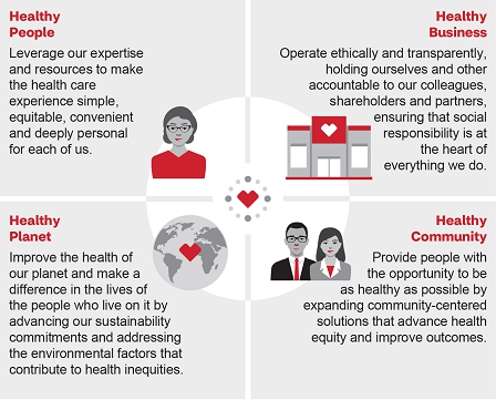 Healthy 2030, our ESG approach, is focused on achieving our economic, environmental and social imperatives and shaping a more equitable and sustainable future for all—across multiple dimensions of health. Our diverse and inclusive workforce reflects the communities we serve and is committed to advancing health equity, bringing care to more people and protecting our environment. Our ESG strategy and initiatives are supported by a strong governance framework, including Board-level oversight, thoroughly reviewed goals, an ESG Steering Committee and regular reporting and disclosures.