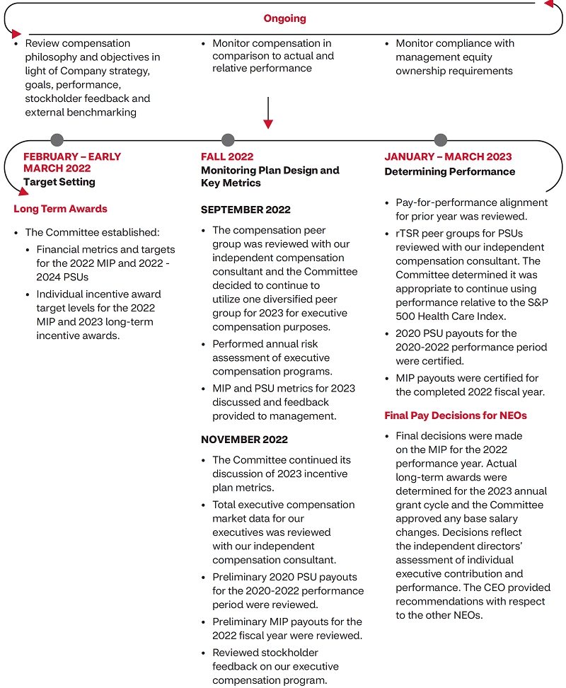 Over the past year, our Board and management team continued their long-standing practice of proactive engagement with stockholders to enhance our understanding and to be responsive of your perspectives and needs. As part of discussions with stockholders, we reviewed the business decision made by the Board and management team in 2022 to resolve the vast majority of the pending opioid lawsuits against the Company, which date back to allegations over a decade old. Reaching a global settlement was a priority for the Board and our stockholders, to allow our current leadership team to focus on forward-looking strategic imperatives. Additional information on the Board’s considerations is provided within this proxy statement.