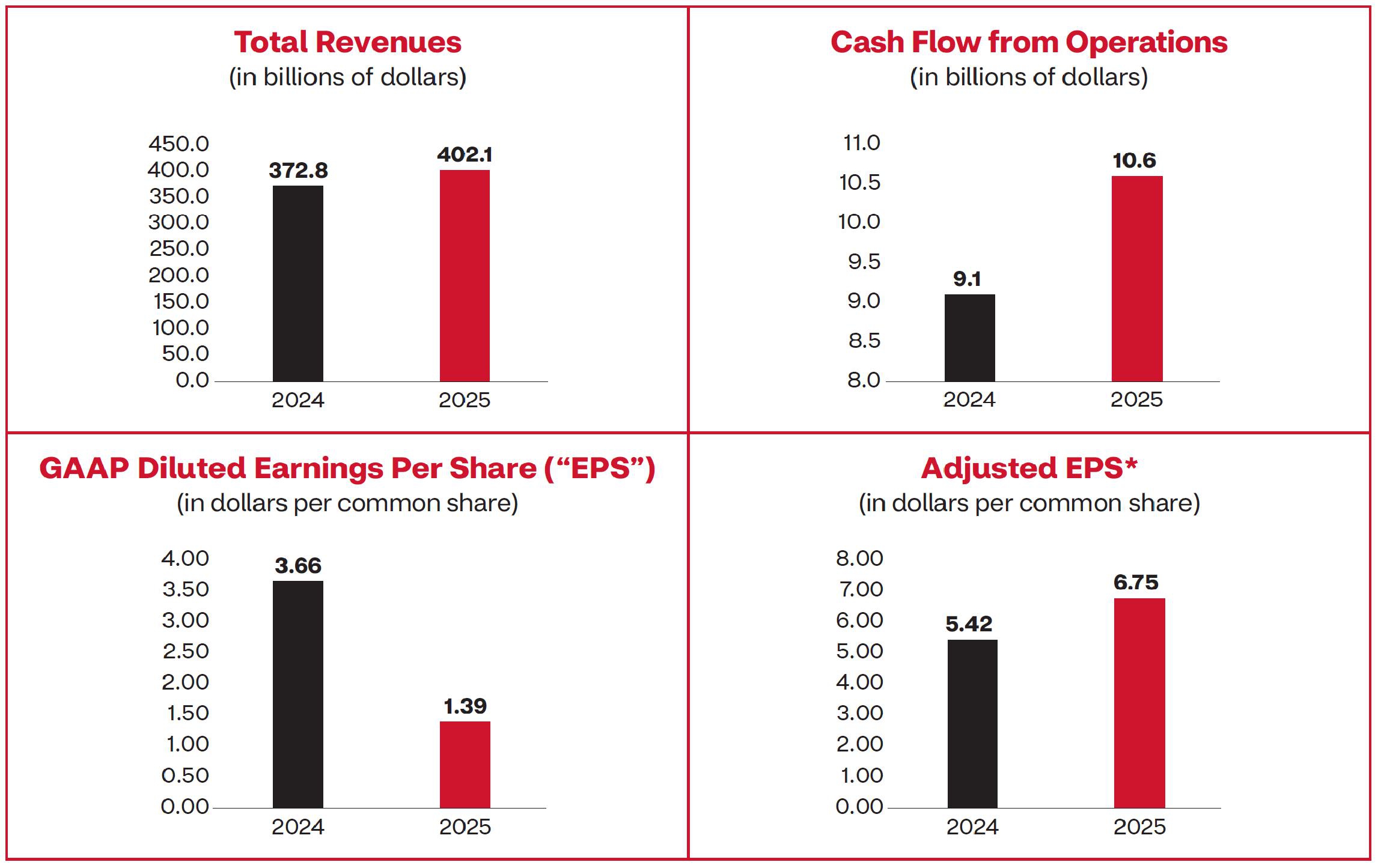 Our momentum remains strong. We made significant progress on margin recovery at Aetna® and remain focused on restoring this business to its full potential. At the same time, CVS Caremark® continued to lead innovation in the PBM industry, we exceeded expectations across CVS Pharmacy® and we’ve taken actions to position our Health Care Delivery businesses for sustainable long-term growth. In 2025, CVS Health delivered $402.1 billion in revenue, generated $10.6 billion in operating cash flow and returned over $3.0 billion to stockholders.