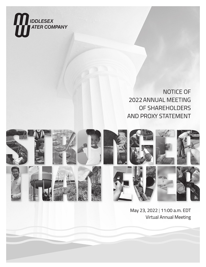 You are cordially invited to attend the Annual Meeting of Shareholders (the "Annual Meeting") of Middlesex Water Company (the "Company") which will be held on May 23, 2022 at 11:00 a.m. Eastern Daylight Time for the following purposes: