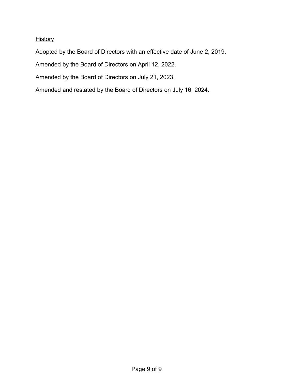 Page 9 of 9 History Adopted by the Board of Directors with an effective date of June 2, 2019. Amended by the Board of Directors on April 12, 2022. Amended by the Board of Directors on July 21, 2023. Amended and restated by the Board of Directors on July 16, 2024.