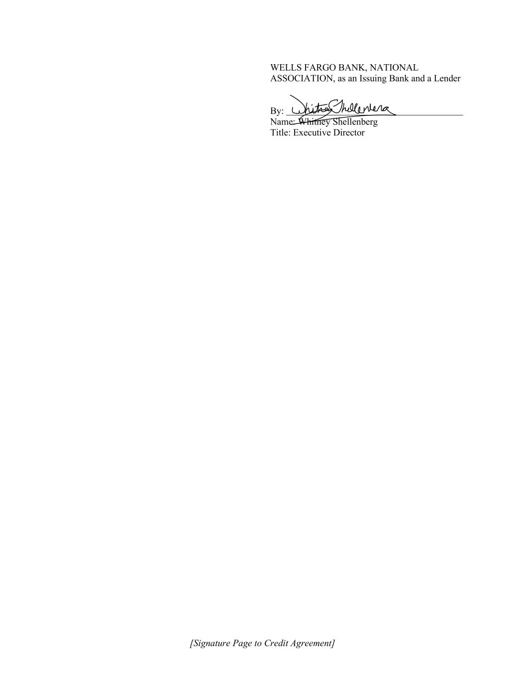 [Signature Page to Credit Agreement] WELLS FARGO BANK, NATIONAL ASSOCIATION, as an Issuing Bank and a Lender By: Name: Whitney Shellenberg Title: Executive Director