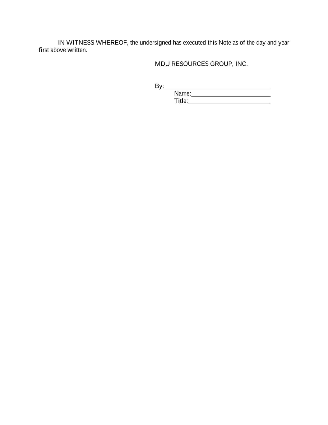 IN WITNESS WHEREOF, the undersigned has executed this Note as of the day and year first above written. MDU RESOURCES GROUP, INC. By: Name: Title: