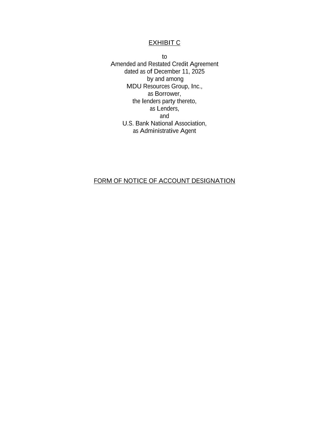 EXHIBIT C to Amended and Restated Credit Agreement dated as of December 11, 2025 by and among MDU Resources Group, Inc., as Borrower, the lenders party thereto, as Lenders, and U.S. Bank National Association, as Administrative Agent FORM OF NOTICE OF ACCOUNT DESIGNATION