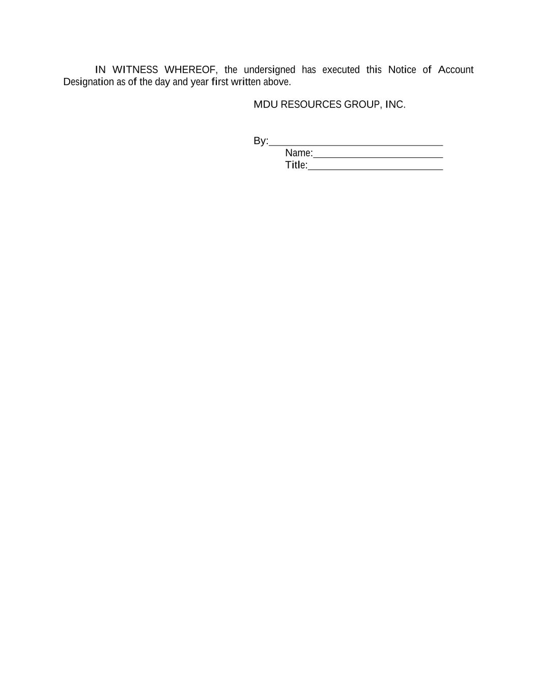 IN WITNESS WHEREOF, the undersigned has executed this Notice of Account Designation as of the day and year first written above. MDU RESOURCES GROUP, INC. By: Name: Title: