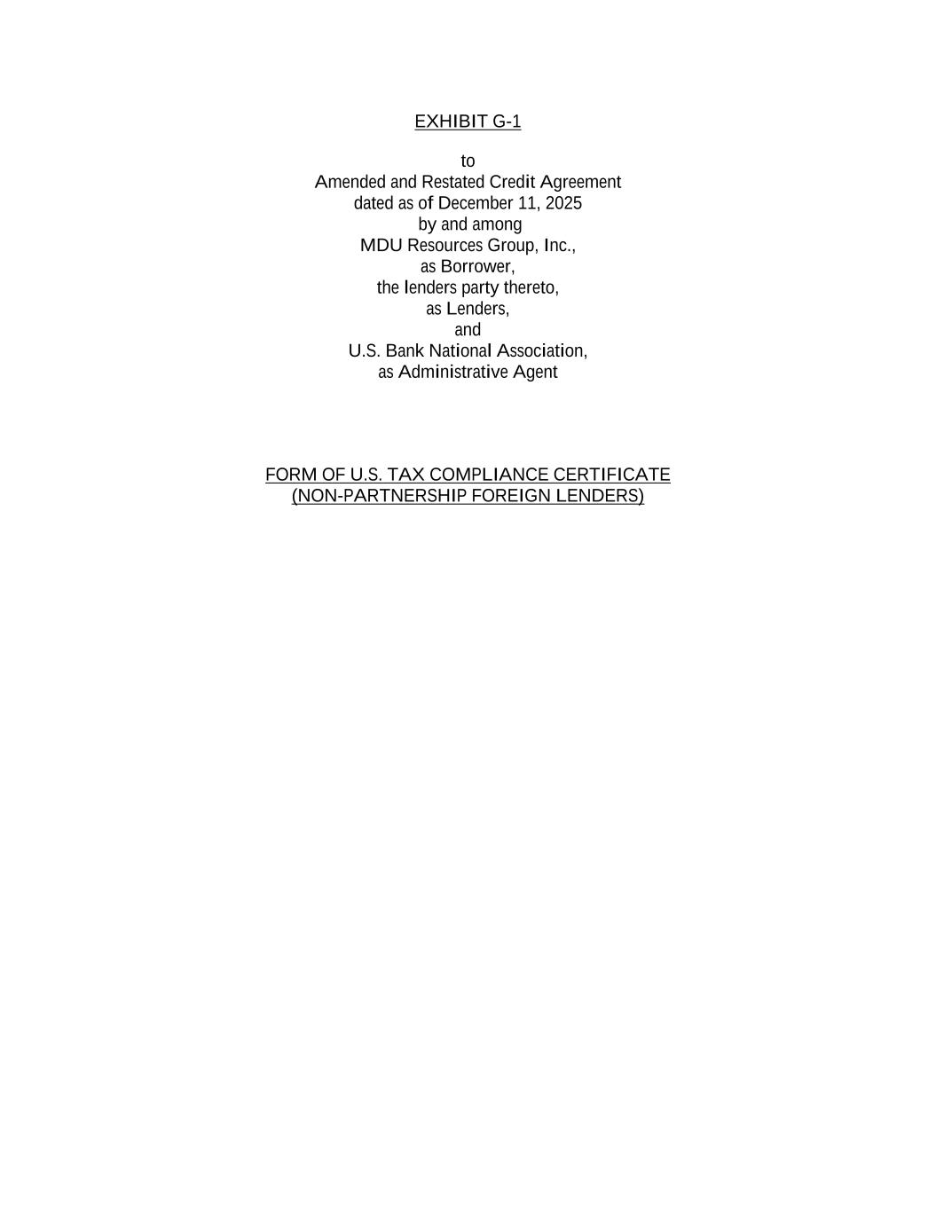 EXHIBIT G-1 to Amended and Restated Credit Agreement dated as of December 11, 2025 by and among MDU Resources Group, Inc., as Borrower, the lenders party thereto, as Lenders, and U.S. Bank National Association, as Administrative Agent FORM OF U.S. TAX COMPLIANCE CERTIFICATE (NON-PARTNERSHIP FOREIGN LENDERS)