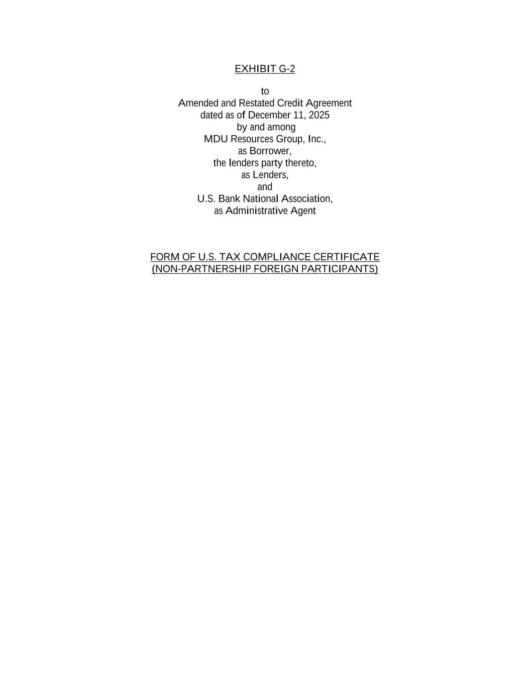 EXHIBIT G-2 to Amended and Restated Credit Agreement dated as of December 11, 2025 by and among MDU Resources Group, Inc., as Borrower, the lenders party thereto, as Lenders, and U.S. Bank National Association, as Administrative Agent FORM OF U.S. TAX COMPLIANCE CERTIFICATE (NON-PARTNERSHIP FOREIGN PARTICIPANTS)