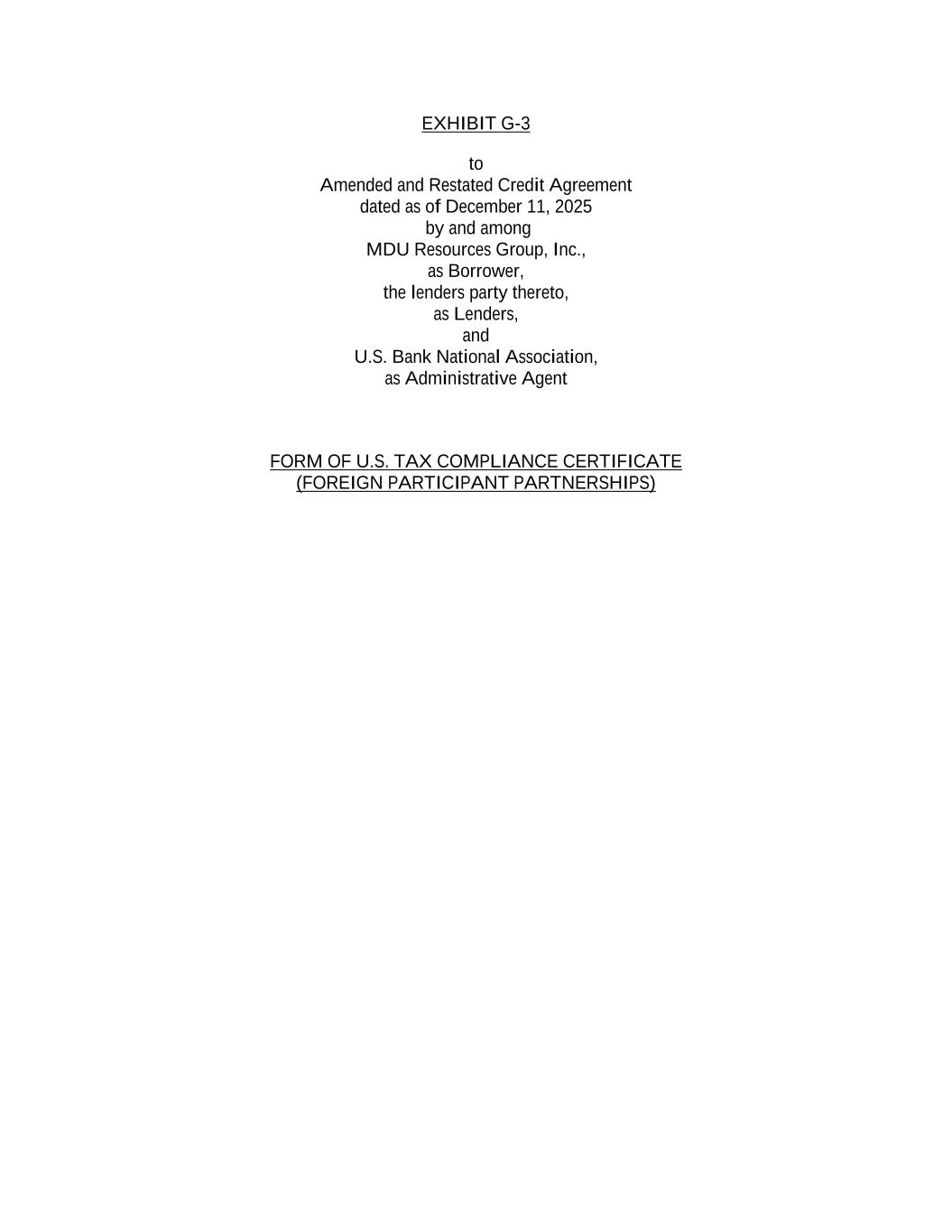 EXHIBIT G-3 to Amended and Restated Credit Agreement dated as of December 11, 2025 by and among MDU Resources Group, Inc., as Borrower, the lenders party thereto, as Lenders, and U.S. Bank National Association, as Administrative Agent FORM OF U.S. TAX COMPLIANCE CERTIFICATE (FOREIGN PARTICIPANT PARTNERSHIPS)