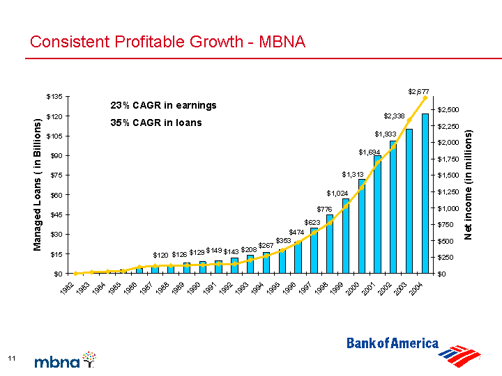 | Consistent Profitable Growth - MBNA 23% CAGR in earnings 35% CAGR in loans |