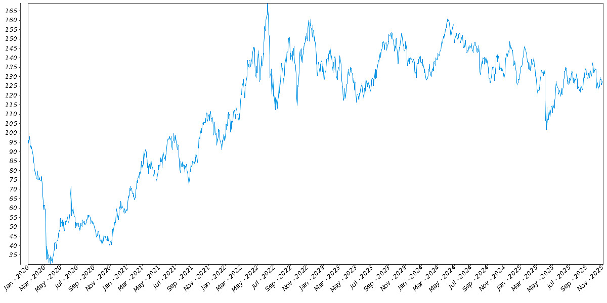 The following graph sets forth the daily historical performance of the XOP in the period from January 2, 2020 through November 3, 2025. We obtained this historical data from Bloomberg L.P. We have not independently verified the accuracy or completeness of the information obtained from Bloomberg L.P. On November 3, 2025, the Closing Market Price of the XOP was $127.66.