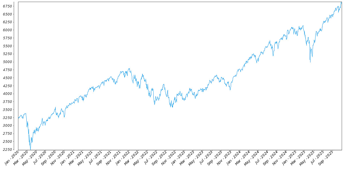 The following graph sets forth the daily historical performance of the SPX in the period from January 2, 2020 through October 31, 2025. We obtained this historical data from Bloomberg L.P. We have not independently verified the accuracy or completeness of the information obtained from Bloomberg L.P. On October 31, 2025, the closing level of the SPX was 6,840.20.