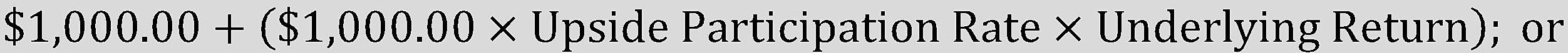 Assuming the Notes are not called prior to maturity, if the Ending Value of the Underlying is greater than or equal to 100% of its Starting Value, at maturity, you will receive 150.00% upside exposure to increases in the value of the Underlying from its Starting Value. |