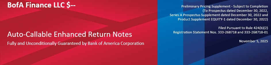 Any payment on the Notes is subject to the credit risk of BofA Finance LLC (“BofA Finance” or the “Issuer”), as issuer of the Notes, and Bank of America Corporation (“BAC” or the “Guarantor”), as guarantor of the Notes. |