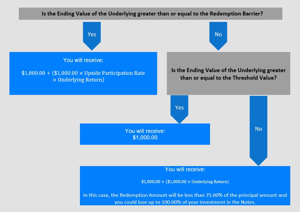 In this case, the Redemption Amount will be less than 75.00% of the principal amount and you could lose up to 100.00% of your investment in the Notes. |