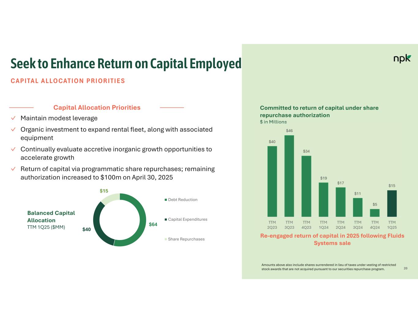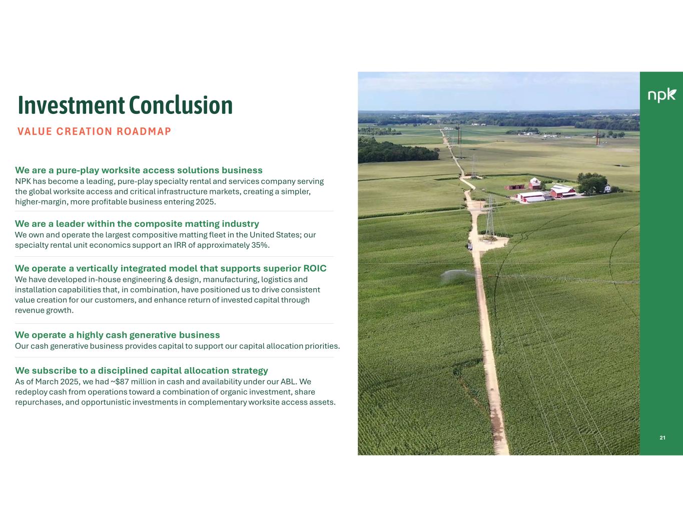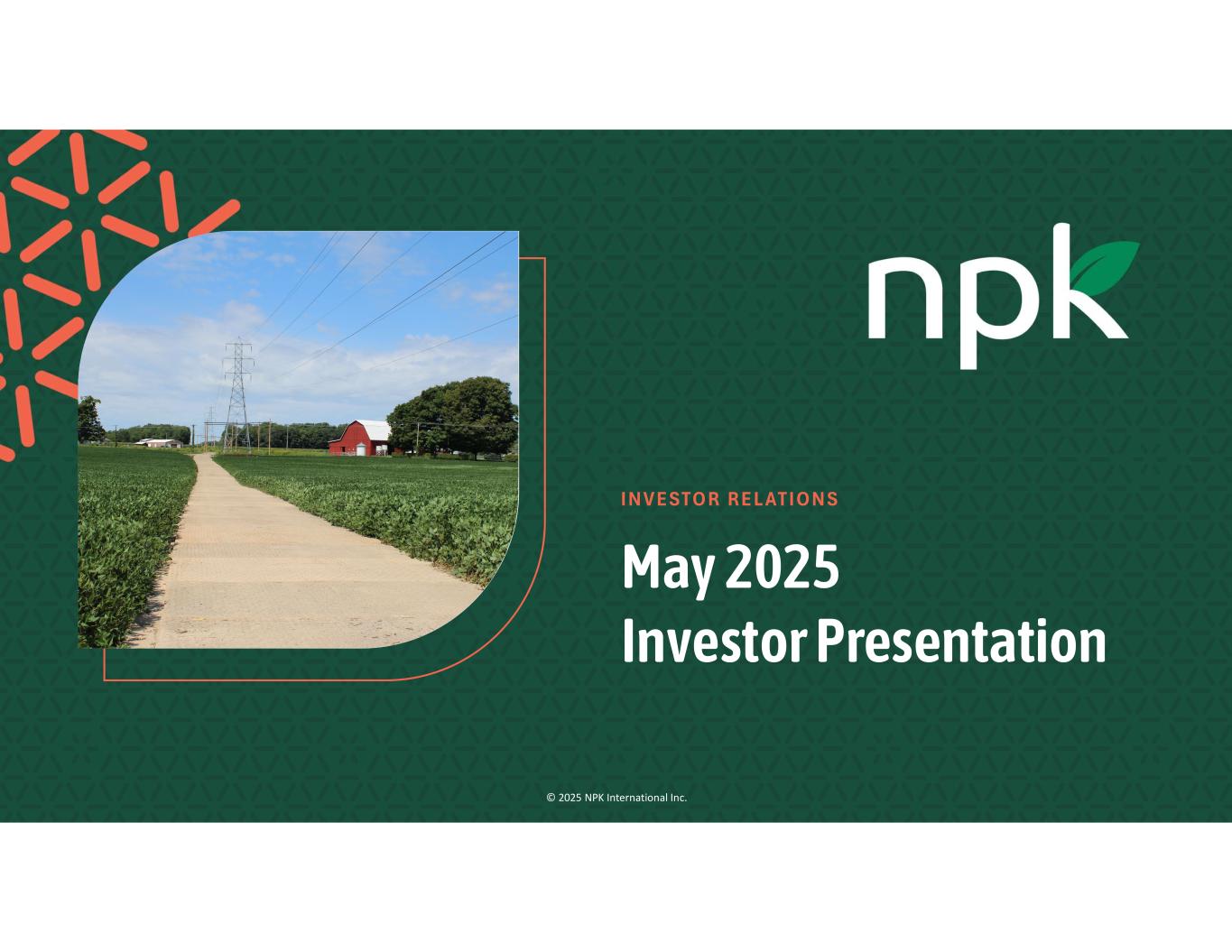 IN V E STO R R E L AT IO N S May 2025 Investor Presentation © 2025 NPK International Inc.