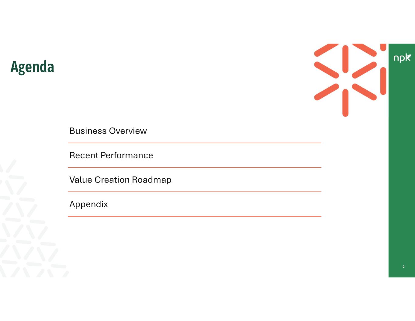 2 Business Overview Recent Performance Value Creation Roadmap Appendix Agenda