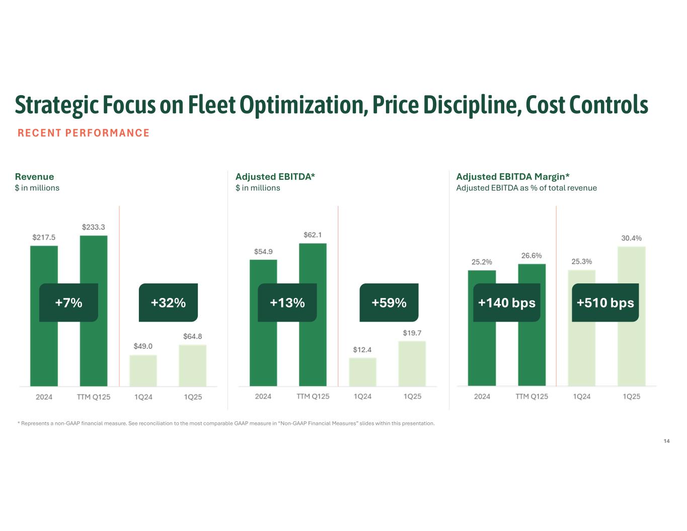 1Q24 vs. 1Q25 Performance Bridge 13 1Q24 vs. 1Q25 Adjusted EBITDA from Continuing Operations* $ in millions * Represents a non-GAAP financial measure. See reconciliation to the most comparable GAAP measure in “Non-GAAP Financial Measures” slides within this presentation. $12 $20