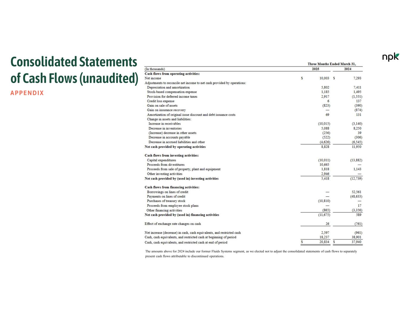 Consolidated Statements of Cash Flows (unaudited) A PP E ND IX The amounts above for 2024 include our former Fluids Systems segment, as we elected not to adjust the consolidated statements of cash flows to separately present cash flows attributable to discontinued operations.