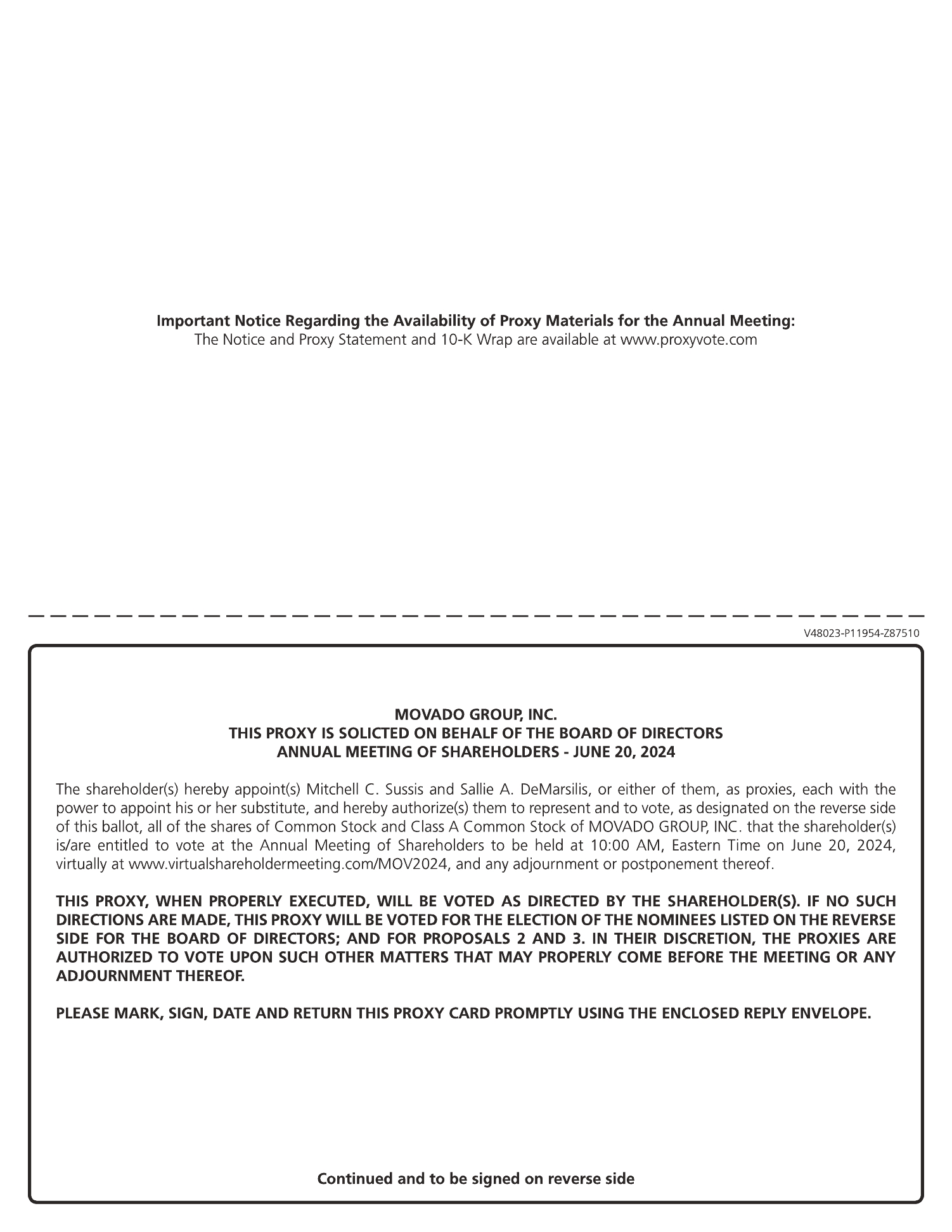 • | voting at www.virtualshareholdermeeting.com/MOV2024 during the Annual Meeting. |