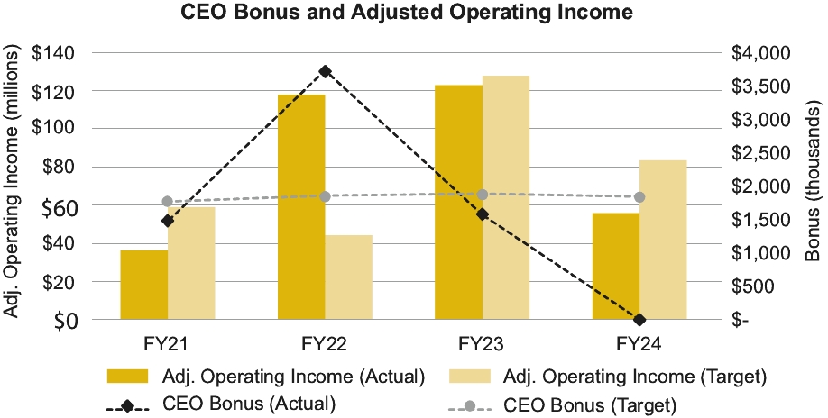 (3) | The dollar amounts reported in column (d) represent the average of the amounts reported for the non-CEO NEOs as a group for each corresponding year in the “Total” column of the Summary Compensation Table. Ms. DeMarsilis, Mr. Soltani, Mr. Sussis and former Senior Vice President Human Resources Vivian D’Elia were our only non-CEO NEOs for fiscal years 2022 and 2023. Ms. DeMarsilis, Mr. Soltani, Mr. Sussis and Ms. Kennedy were our only non-CEO NEOs for fiscal year 2024. |