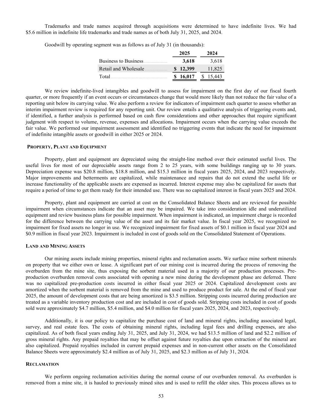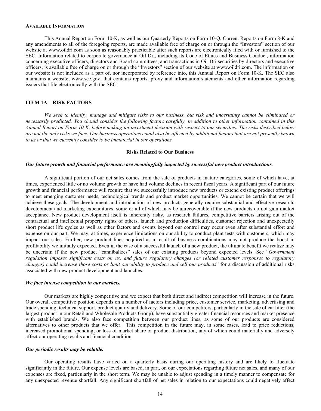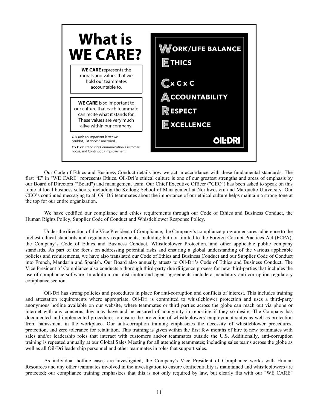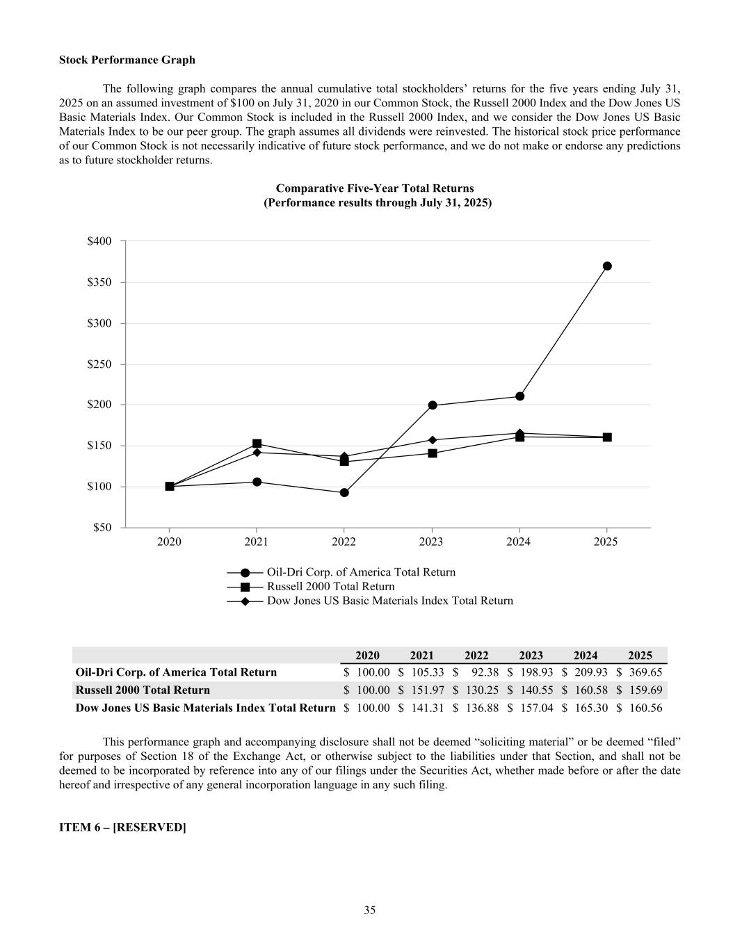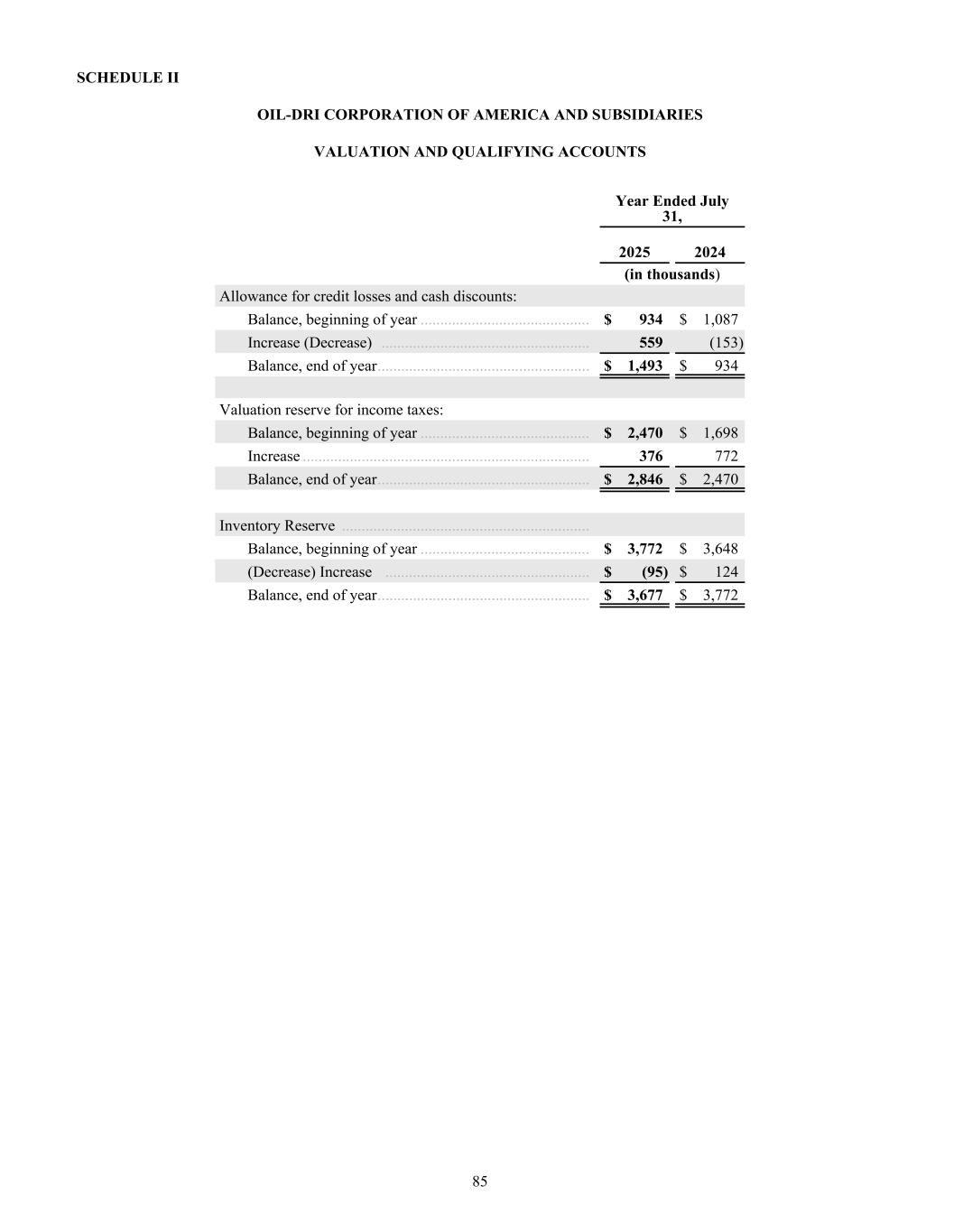 Dear Oil-Dri Stakeholder, Fiscal year 2025 was another record year for the Company and represented our third year of playing “Miney Ball” with fantastic results. What is Miney Ball you ask? It is Oil-Dri’s version of Money Ball, the data analytic methods employed by baseball general managers to help them make better lineup decisions for their teams. Miney Ball for us is all about making data-driven decisions. This approach has become a part of our culture and continues to drive measurable performance across the entire business. My father always said, “Everyone is entitled to their opinions, but they are not entitled to the facts.” How right he was! He also used to say, “Earnings are an opinion, cash is a fact.” These principles remain at the forefront of how we manage the Company. The team pulled together this year not only to deliver record sales and profits, but also robust cash generation. We began the year with over $23 million in cash and cash equivalents. During the past twelve-month period, we invested $33 million in capital expenditures, $8 million in dividends, and paid down $11 million of debt. Even with these significant outlays, we finished the year with over $50 million in cash and cash equivalents. I am grateful to our nearly 1,000 teammates worldwide who made these results a reality through their dedication and hard work. Our capital expenditures go toward maintaining and improving our plants, ensuring our teammates’ safety, allowing us to continue providing outstanding service to our customers and implementing growth and cost savings projects. Our facilities have never been in better shape and are the foundation on which current and future growth can be built. That said, our commitment to continuous improvement remains as strong as ever, and we plan to make significant investments in our infrastructure moving forward.” We head into fiscal year 2026 recognizing that the first six months of the fiscal year may be challenging from a year-over-year perspective due to our strong performance in the first half of 2025. However, while we do not give formal earnings guidance, our confidence remains high for the year as a whole. This outlook stems from the momentum we have built across the company. Our animal health business continues to expand with new trials and customers. The lightweight cat litter segment is growing as a percentage of the entire category, which bodes well for our lightweight brands and the private label lightweight litter products we manufacture for our retail partners. The same can be said for our crystal cat litter products. We are very pleased with the Ultra Pet Company, Inc. acquisition and fully expect to grow the business with branded and private label items. Our diverse mix of products, markets, customers, and channels continues to be a major source of strength for the Company. All businesses are working together to enable us to Create Value from Sorbent Minerals. As we begin our 85 year in business, I want to extend my sincere gratitude to our shareholders, customers, suppliers and Oil-Dri teammates who have helped us achieve this significant milestone. We are proud of our longevity and believe that the best is yet to come! th LETTER TO STAKEHOLDERS “OUR FACILITIES HAVE NEVER BEEN IN BETTER SHAPE AND ARE THE FOUNDATION ON WHICH CURRENT AND FUTURE GROWTH CAN BE BUILT.”