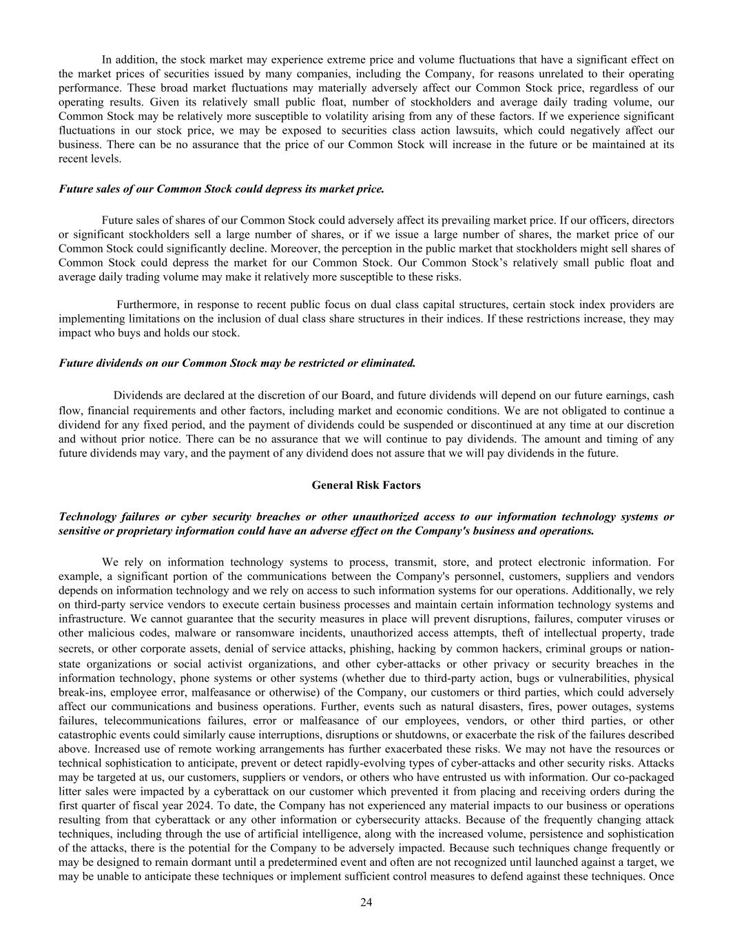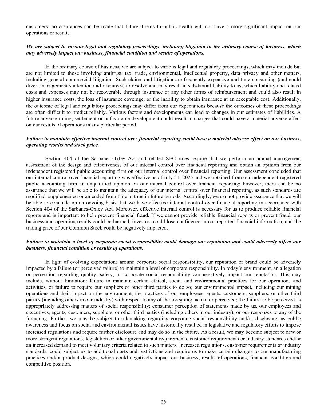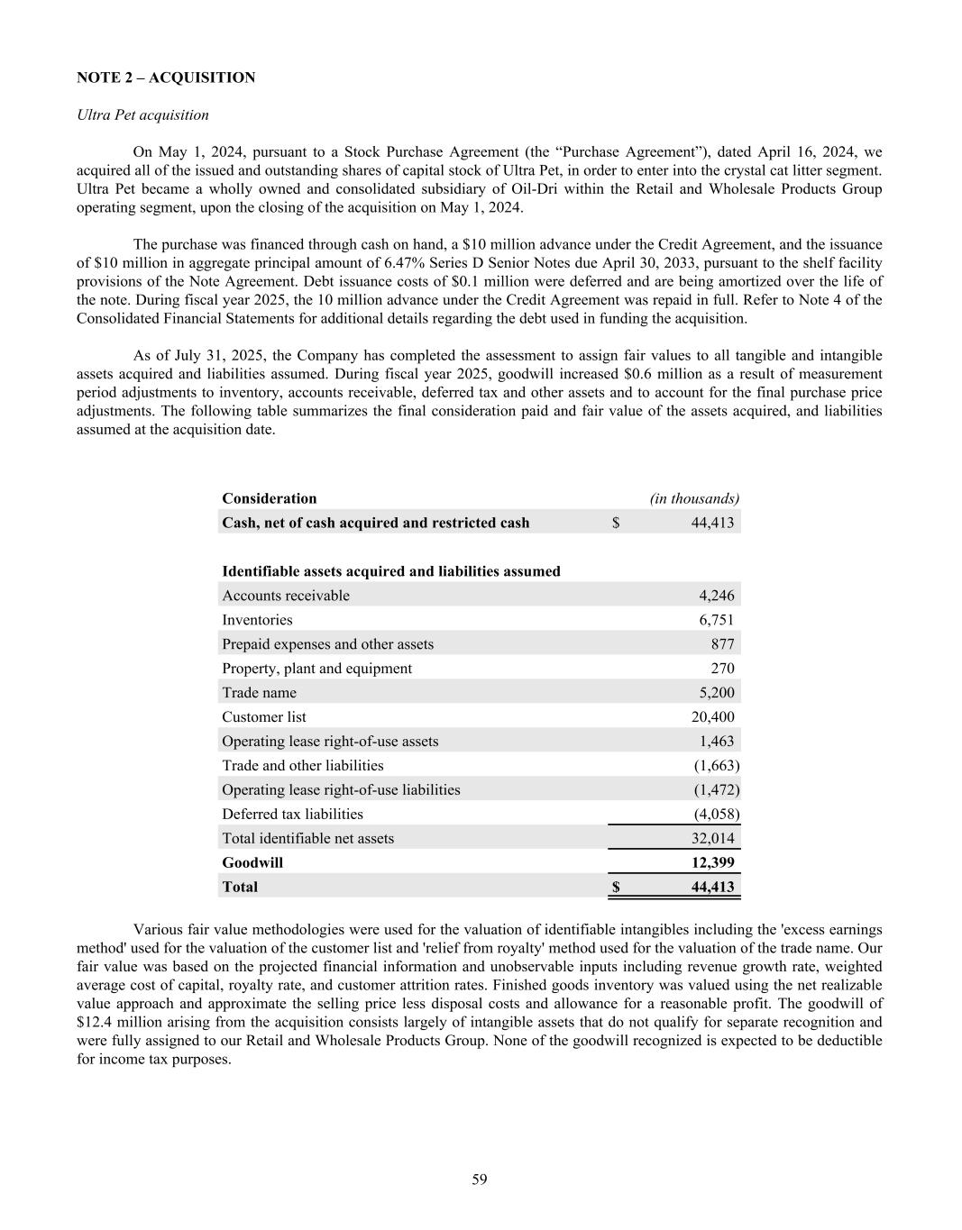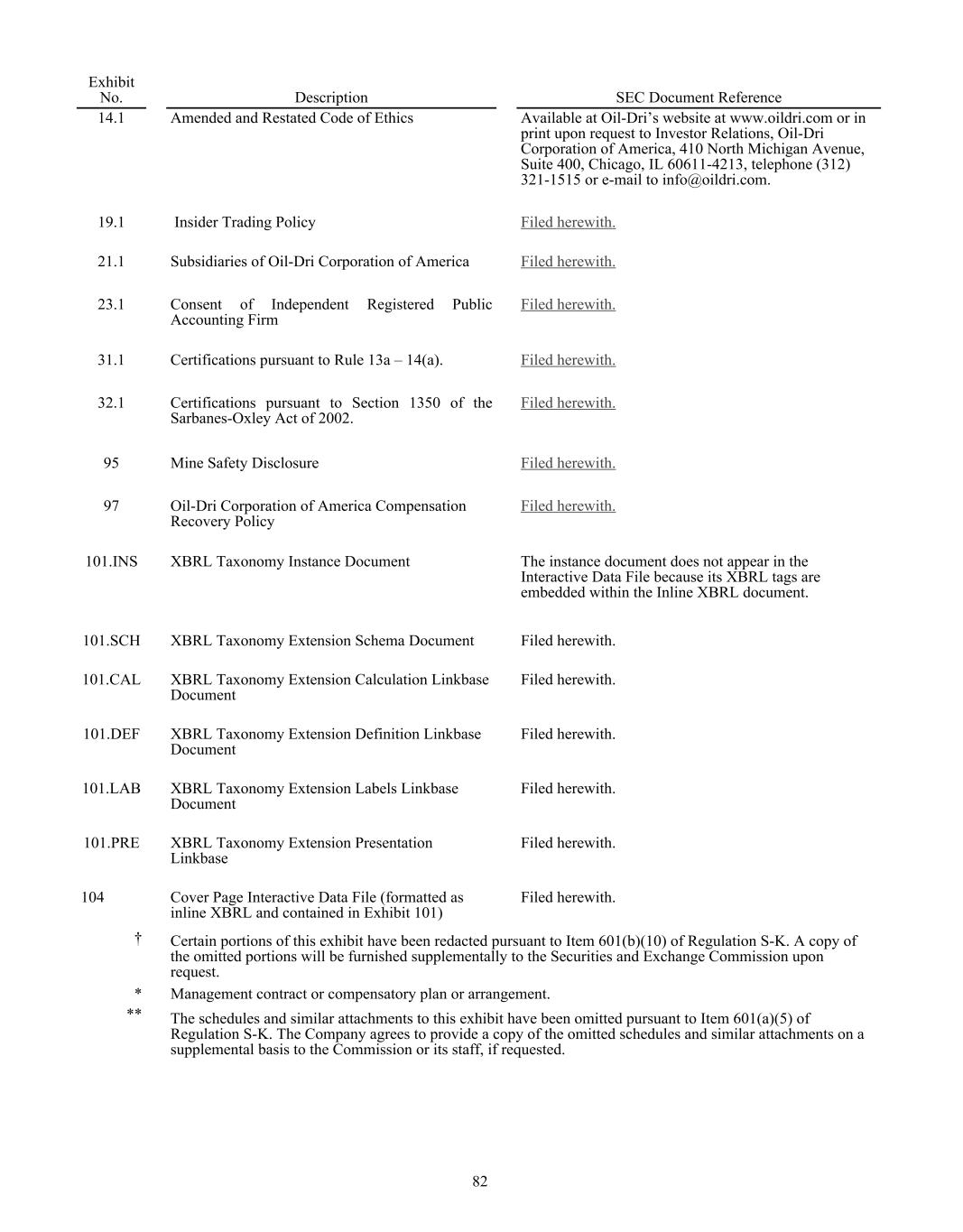 Dear Oil-Dri Stakeholder, Fiscal year 2025 was another record year for the Company and represented our third year of playing “Miney Ball” with fantastic results. What is Miney Ball you ask? It is Oil-Dri’s version of Money Ball, the data analytic methods employed by baseball general managers to help them make better lineup decisions for their teams. Miney Ball for us is all about making data-driven decisions. This approach has become a part of our culture and continues to drive measurable performance across the entire business. My father always said, “Everyone is entitled to their opinions, but they are not entitled to the facts.” How right he was! He also used to say, “Earnings are an opinion, cash is a fact.” These principles remain at the forefront of how we manage the Company. The team pulled together this year not only to deliver record sales and profits, but also robust cash generation. We began the year with over $23 million in cash and cash equivalents. During the past twelve-month period, we invested $33 million in capital expenditures, $8 million in dividends, and paid down $11 million of debt. Even with these significant outlays, we finished the year with over $50 million in cash and cash equivalents. I am grateful to our nearly 1,000 teammates worldwide who made these results a reality through their dedication and hard work. Our capital expenditures go toward maintaining and improving our plants, ensuring our teammates’ safety, allowing us to continue providing outstanding service to our customers and implementing growth and cost savings projects. Our facilities have never been in better shape and are the foundation on which current and future growth can be built. That said, our commitment to continuous improvement remains as strong as ever, and we plan to make significant investments in our infrastructure moving forward.” We head into fiscal year 2026 recognizing that the first six months of the fiscal year may be challenging from a year-over-year perspective due to our strong performance in the first half of 2025. However, while we do not give formal earnings guidance, our confidence remains high for the year as a whole. This outlook stems from the momentum we have built across the company. Our animal health business continues to expand with new trials and customers. The lightweight cat litter segment is growing as a percentage of the entire category, which bodes well for our lightweight brands and the private label lightweight litter products we manufacture for our retail partners. The same can be said for our crystal cat litter products. We are very pleased with the Ultra Pet Company, Inc. acquisition and fully expect to grow the business with branded and private label items. Our diverse mix of products, markets, customers, and channels continues to be a major source of strength for the Company. All businesses are working together to enable us to Create Value from Sorbent Minerals. As we begin our 85 year in business, I want to extend my sincere gratitude to our shareholders, customers, suppliers and Oil-Dri teammates who have helped us achieve this significant milestone. We are proud of our longevity and believe that the best is yet to come! th LETTER TO STAKEHOLDERS “OUR FACILITIES HAVE NEVER BEEN IN BETTER SHAPE AND ARE THE FOUNDATION ON WHICH CURRENT AND FUTURE GROWTH CAN BE BUILT.”