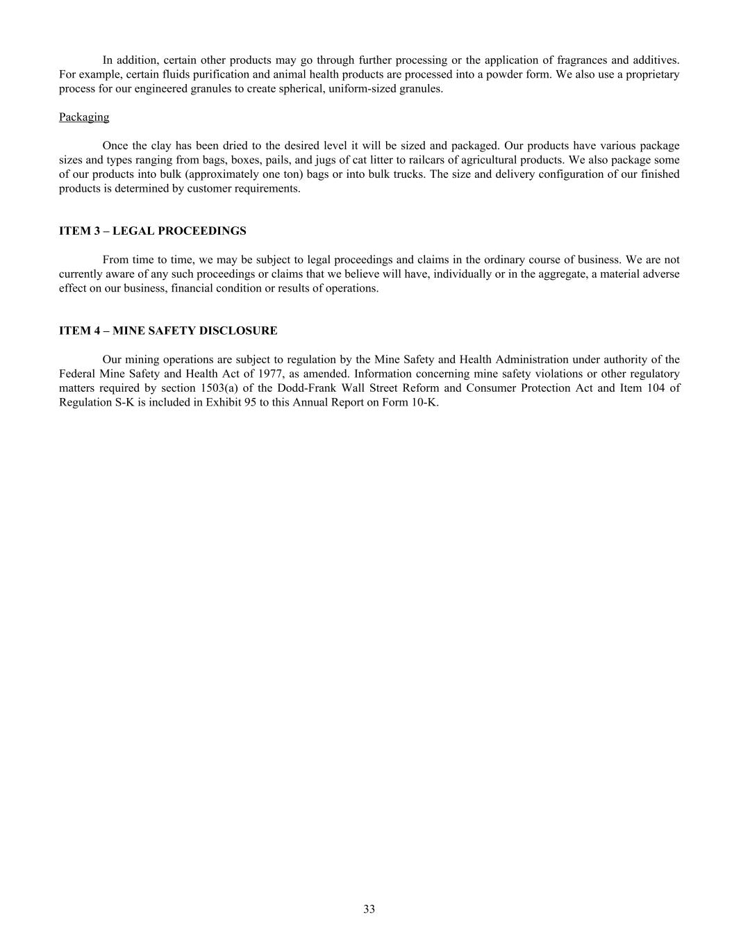 LAYING THE GROUNDWORK FOR SUSTAINABLE GROWTH Over the past few years, we have made significant capital investments in our plant infrastructure designed not only to maintain the strength and reliability of our operations, but also to position the Company for sustainable growth. These investments go beyond replacing aging assets with modern, more efficient systems. They also expand our production capabilities, improve throughput, and create additional capacity to support increasing customer demand. By strategically upgrading equipment and facilities, we are able to enhance operational flexibility and efficiency, save costs, and pursue our growth strategies across the cat litter, renewable diesel and animal health markets. These initiatives are building a stronger foundation for the future, ensuring that we have the scale and resources to meet today’s needs while fueling tomorrow’s growth. MINE TO MARKET ANIMAL HEALTH LIGHTWEIGHT LITTER RENEWABLE DIESEL Creating Value from Sorbent Minerals MISSION CRYSTAL LITTER