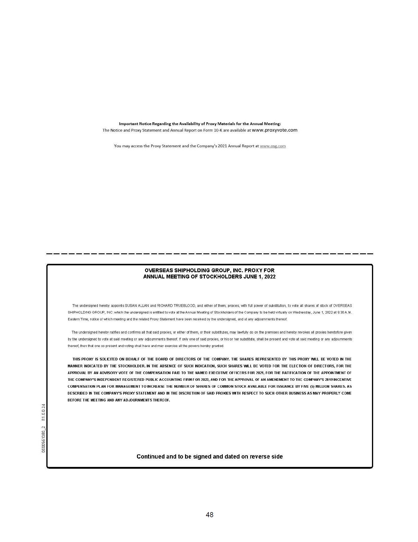 Important Notice Regarding the Availability of Proxy Materials for the Annual Meeting to be Held on June 1, 2022: This Notice of Annual Meeting, Proxy Statement, and the 2021 Form 10-K are available at www.osg.com/investor-relations.
