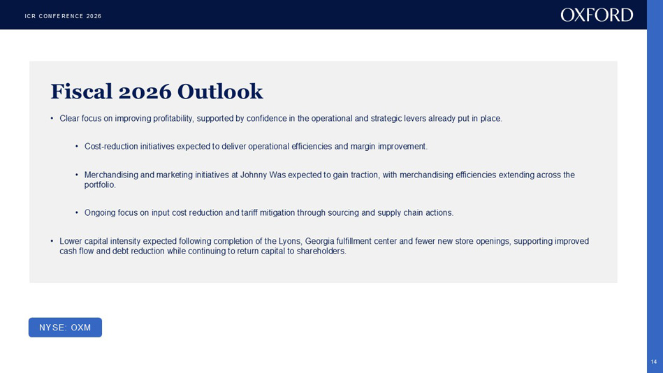 NYSE: OXM ICR Conference 2026 January 12, 2026