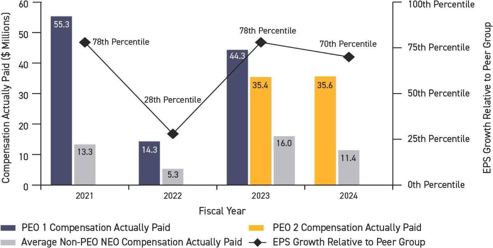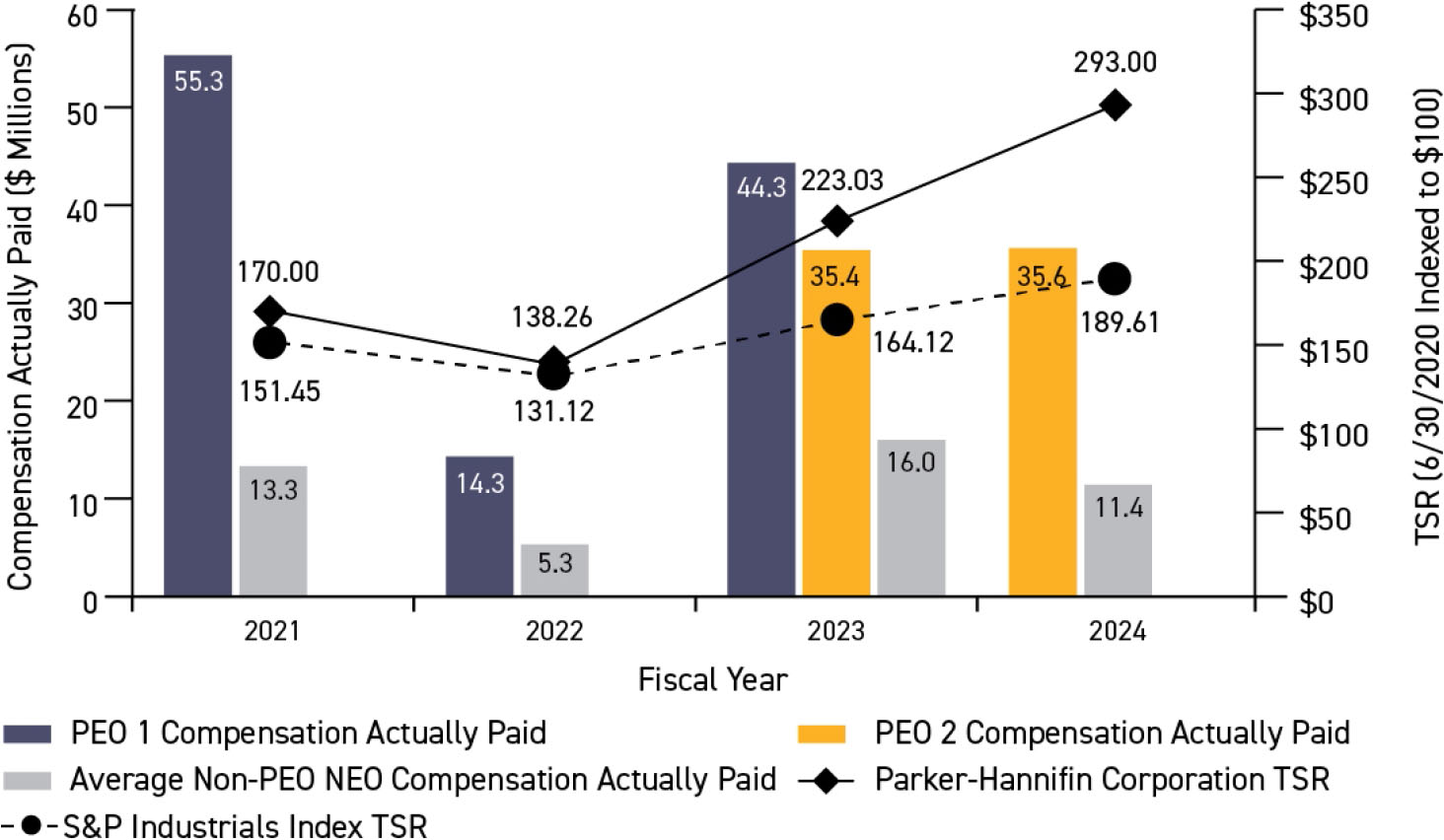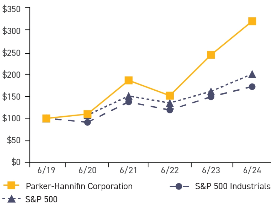 Parker results in fiscal year 2024 built upon a pattern of success established over the past five years that has helped deliver substantial shareholder returns reflected in our 5-year stock performance.