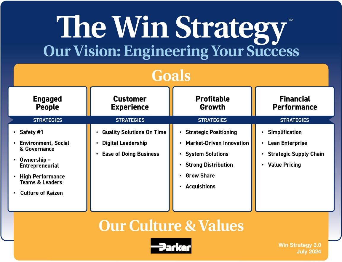 | The Win Strategy™ - | The Win Strategy is Parker’s business system that defines the goals and initiatives that drive growth, transformation and success. |