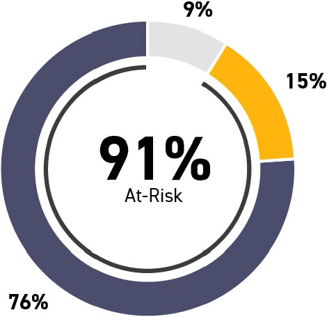 ✓The target total direct compensation package for our Chief Executive Officer is a mix of 9% fixed and 91% at-risk, and for our other Named Executive Officers is an average mix of 19% fixed and 81% at-risk