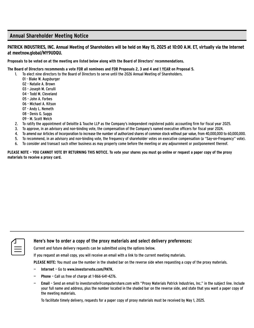 PATRICK INDUSTRIES, INC.