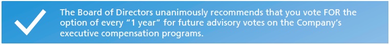 In addition to providing shareholders with the opportunity to cast an advisory vote on the executive compensation programs for the named executive officers, this year the Company is providing shareholders with an advisory vote on whether the frequency of the advisory vote on the executive compensation programs should be every 1, 2 or 3 years.