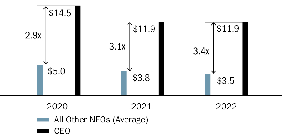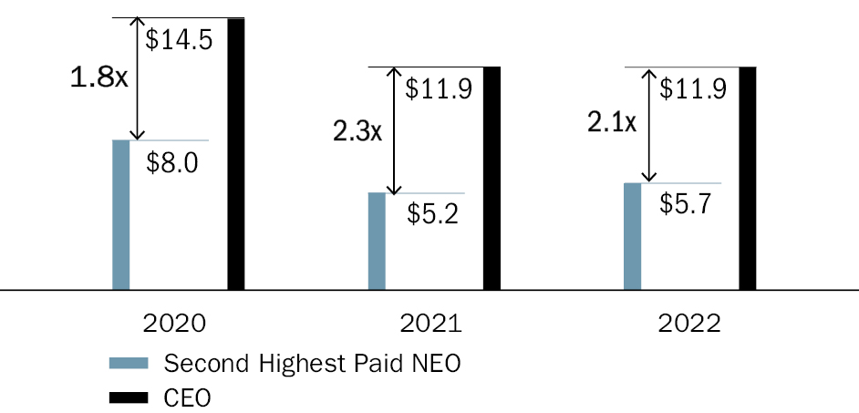 The diversification of our Board has been achieved through our ongoing Board refreshment program. Because of that program, no director nominee has a tenure with us of ten years or more, and the average tenure of our independent director nominees has declined from 8.1 years in 2022 to 4.9. Similarly, the average age of our independent director nominees has declined from 57.9 years to 56.4 years.