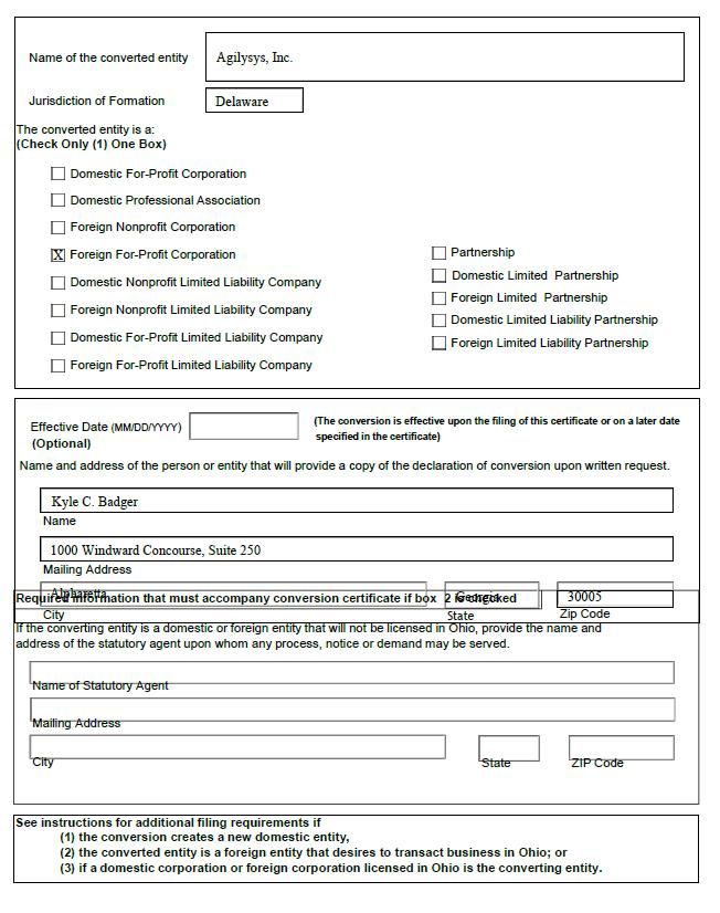 ENDORSEMENT_LINE______________ SACKPACK_____________ MR A SAMPLE DESIGNATION (IF ANY) ADD 1 ADD 2 ADD 3 ADD 4 ADD 5 ADD 6 MMMMMMMMM Using a black ink pen, mark your votes with an X as shown in this example. Please do not write outside the designated areas. MMMMMMMMMMMMMMM C123456789 000000000.000000 ext 000000000.000000 ext 000000000.000000 ext 000000000.000000 ext 000000000.000000 ext 000000000.000000 ext Your vote matters – here’s how to vote! You may vote online or by phone instead of mailing this card. Votes submitted electronicallymust be received by 1:00 a.m., Eastern Time, on November 18, 2021 Online Go to www.investorvote.com/AGYS or scan the QR code — login details are located in the shaded bar below. Phone Call toll free 1-800-652-VOTE (8683) within the USA, US territories and Canada Save paper, time and money! Sign up for electronic delivery at www.investorvote.com/AGYS 2021 Annual Meeting Proxy Card 1234 5678 9012 345 • IF VOTING BY MAIL, SIGN, DETACH AND RETURN THE BOTTOM PORTION IN THE ENCLOSED ENVELOPE. • Proposals — The Board of Directors recommend a vote FOR all the nominees listed and FOR Proposals 2 –5.A 1. Election of Directors: + 01 -Donald A. Colvin 02 -Dana Jones 03 -Jerry Jones 04 -Michael A. Kaufman 05 -Melvin L. Keating 06 -John Mutch 07 -Ramesh Srinivasan Mark here to vote FOR all nominees Mark here to WITHHOLD vote from all nominees 01 02 03 04050607 For All EXCEPT -To withhold a vote for one or more nominees, mark the box to the left and the corresponding numbered box(es) to the right. For Against Abstain For Against Abstain 3. Approval of the exclusive forum provision of our proposed Delaware 2. Approval of the Company’s reincorporation from the State of Certificate of Incorporation. Ohio to the State of Delaware For Against Abstain For Against Abstain 5. Ratification of the appointment of Grant Thornton LLP as our of our named executive officers set forth in the attached 4. Approval, on a non-binding advisory basis, of the compensation independent registered public accounting firm for the fiscal Proxy Statement year ending March 31, 2022 In their discretion, the proxies are authorized to vote upon such other business as may properly come before the Annual Meeting or any adjournments thereof Authorized Signatures — This section must be completed for your vote to count. Please date and sign below. B Pleasesignexactlyasname(s)appears hereon. Joint owners shouldeach sign. When signing as attorney, executor, administrator, corporate officer,trustee, guardian, or custodian, please give fulltitle. Date (mm/dd/yyyy) — Please print date below. Signature 1 — Please keep signature within the box. Signature 2 — Please keep signature within the box. MR A SAMPLE (THIS AREA IS SET UP TO ACCOMMODATE C 1234567890 J N T 140 CHARACTERS) MR A SAMPLE AND MR A SAMPLE AND MR A SAMPLE AND MR A SAMPLE AND MR A SAMPLE AND 1UPX 507876 MR A SAMPLE AND MR A SAMPLE AND MR A SAMPLE AND