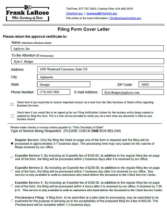 Alpharetta, Georgia 30005 Facsimile: E-mail: Attention: