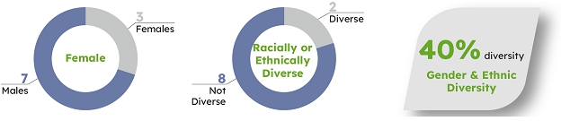 Diverse board, with three female directors and two directors who are racially or ethnically diverse |