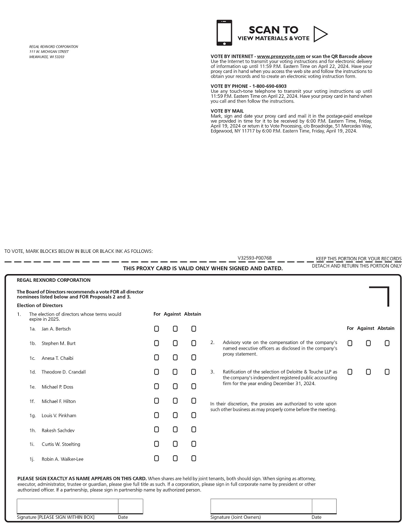 On behalf of our Board of Directors and the entire Company, we thank you for your share ownership in Regal Rexnord and look forward to seeing you at the meeting.