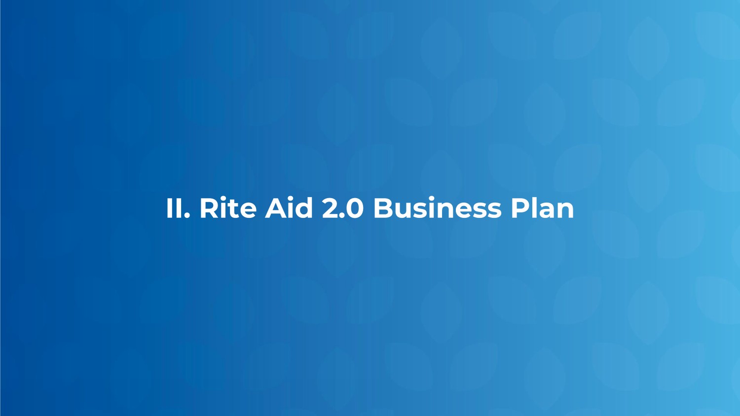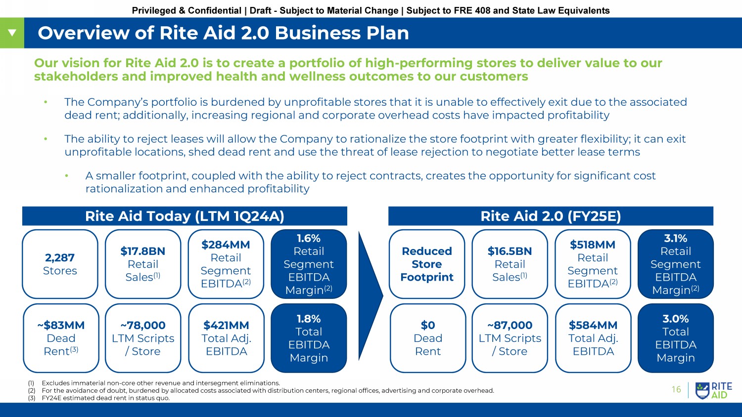 Privileged & Confidential | Draft - Subject to Material Change | Subject to FRE 408 and State Law Equivalents II. Rite Aid 2.0 Business Plan