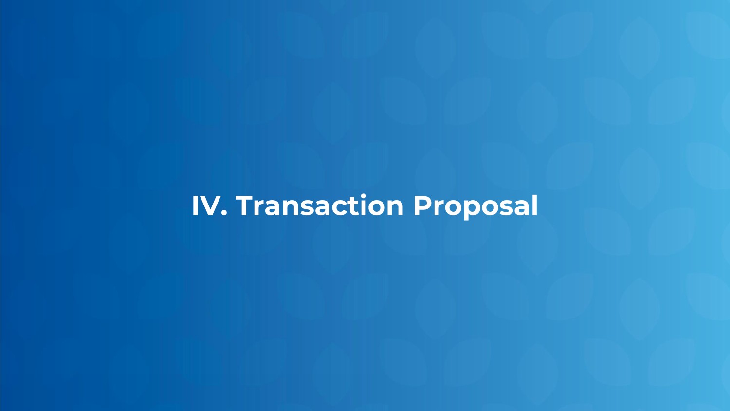 Privileged & Confidential | Draft - Subject to Material Change | Subject to FRE 408 and State Law Equivalents IV. Transaction Proposal