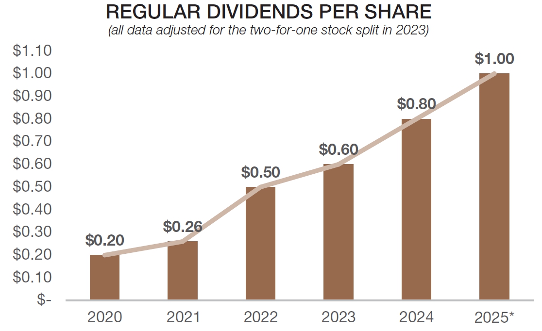 | Dividends per share | 0.80 | 0.60 | 0.50 | 0.26 | 0.20 | ||||||||||||||