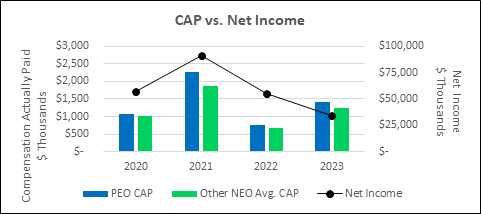 | Fiscal Year | Summary Compensation Table Total for PEO(1) | Compensation Actually Paid to PEO(1) | Average Summary Compensation Table Total for Non-PEO Named Executive Officers(2) | Average Compensation Actually Paid to Non-PEO Named Executive Officers(2) | Value of Initial Fixed $100 Investment Based On | Net Income (Dollars in thousands) | Adjusted EPS | |
