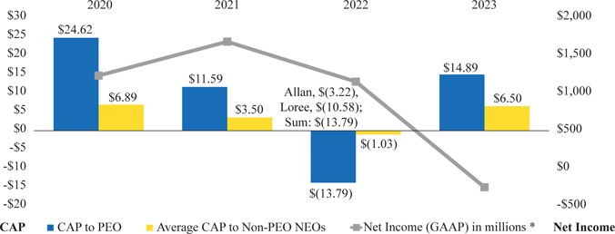 | ● | GAAP earnings per share from continuing operations was $(1.88) in 2023 compared to $1.06 in 2022. Excluding certain gains and charges, Adjusted EPS* from continuing operations was $1.45 in 2023 compared to $4.62 in 2022. |