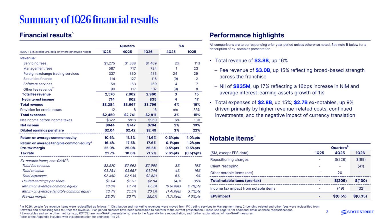 1 1Q 2026 Financial Highlights .3 April 17, 2026 NYSE: STT