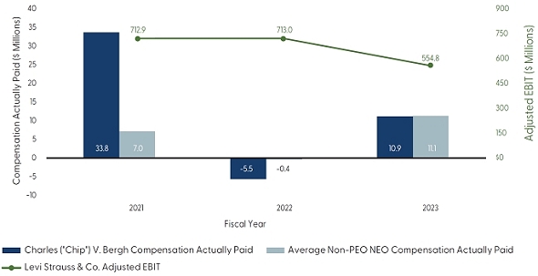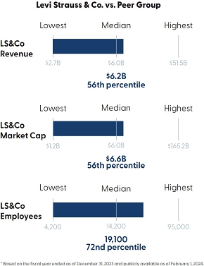 2023 was a pivotal year for Levi Strauss & Co. (“LS&Co.”), as the company carried out a successful CEO succession plan that resulted in Michelle Gass, a proven and distinguished business leader, being named CEO of LS&Co. as of January 2024. We applaud Chip Bergh for an impressive 12+ year tenure as chief executive officer, and we’re honored to have Michelle guide the company through this next chapter of growth.