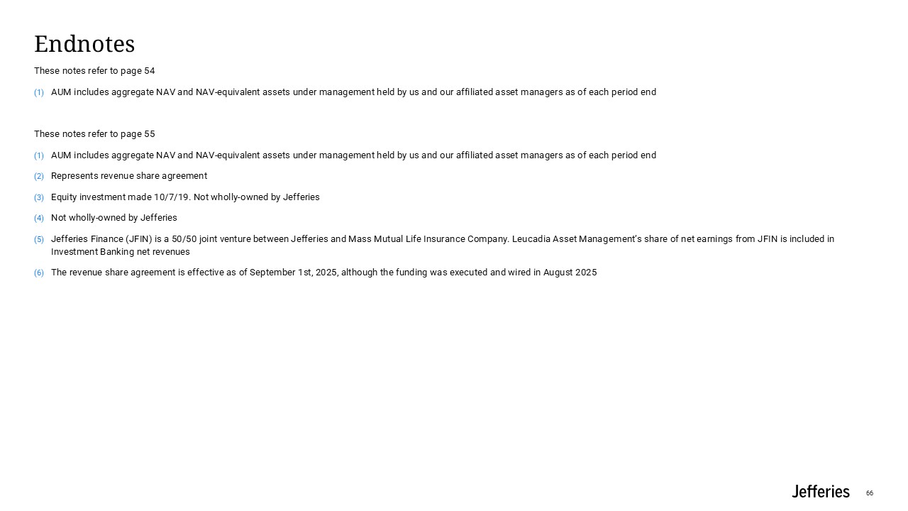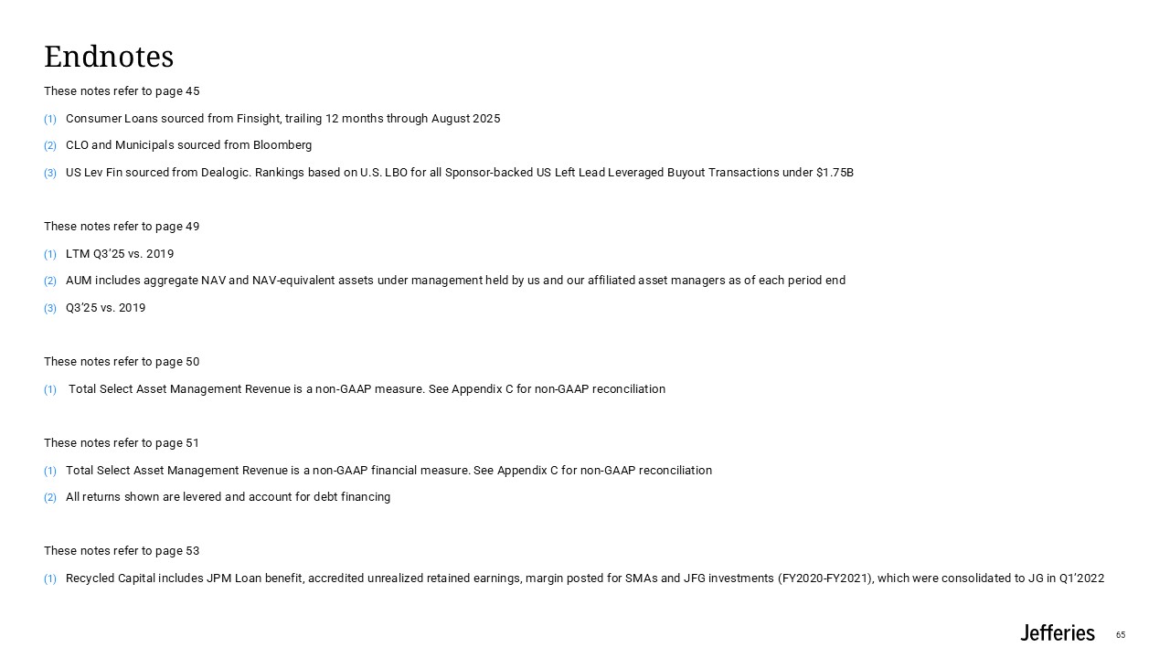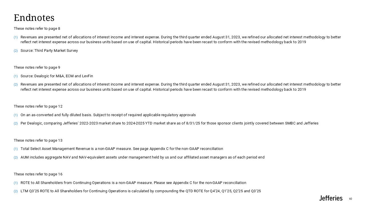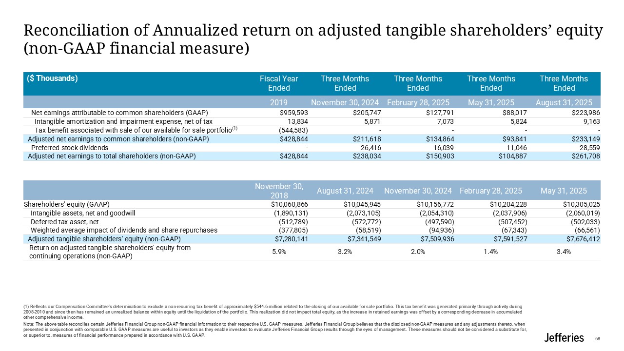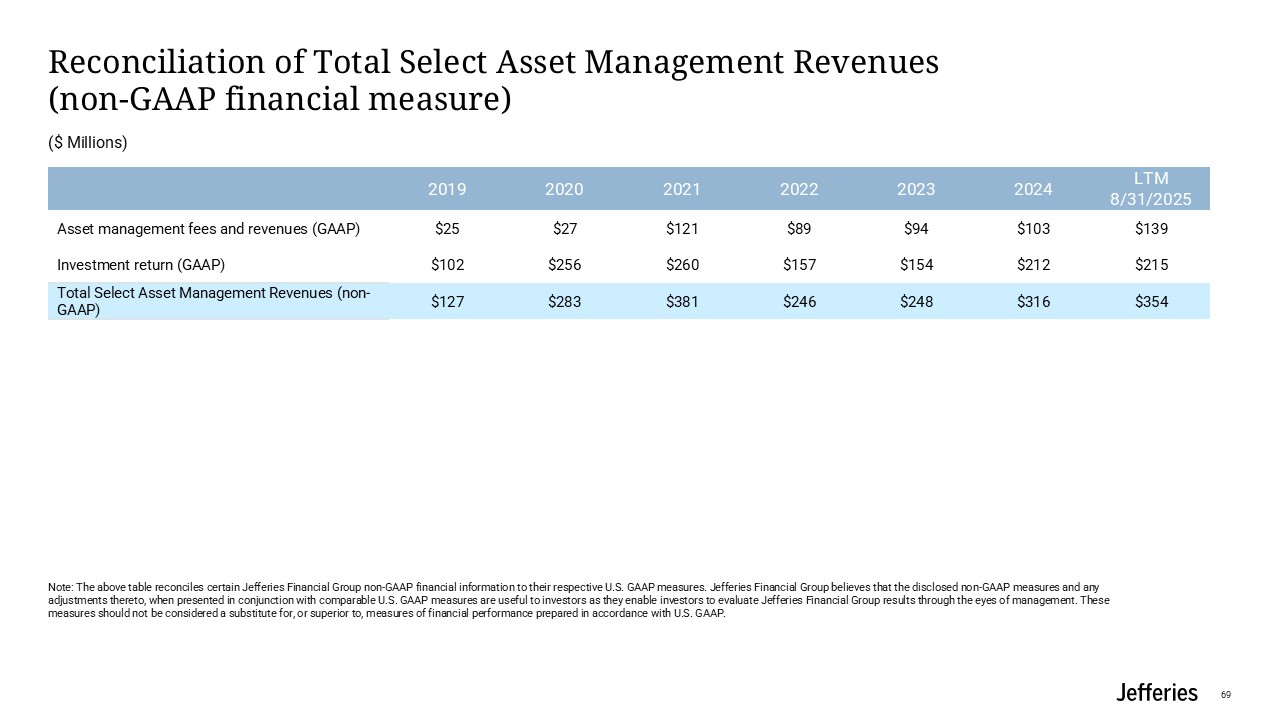 reconciles certain Jefferies Financial Group non-GAAP financial information to their respective U.S. GAAP measures. Jefferies Financial Group believes that the disclosed non-GAAP measures and any adjustments thereto, when presented in