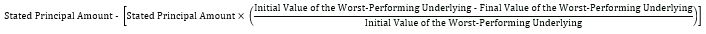 Principal Amount; otherwise, your Notes are subject to 1-to-1 downside exposure to decreases in the Worst-Performing Underlying from its Initial Value, with up to 100% of the Stated Principal Amount at risk. At maturity you will also receive the