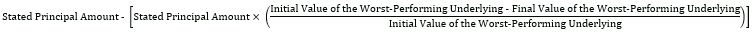 If the Notes are not called prior to maturity and the Final Value of the Worst-Performing Underlying is less than its Threshold Value,
